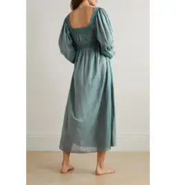 The Doen Catrinette Dress in Sea foam is an effortlessly elegant piece that combines soft, flowing fabric with a timeless silhouette. Designed with a flattering, relaxed fit, this dress features delicate pleating and subtle gathering, creating an airy, feminine shape. The seafoam colorway adds a tranquil, soft touch, perfect for any occasion, whether dressed up or down. With its gently ruffled neckline, adjustable straps, and midi length, the Catrinette dress evokes a sense of serene beauty, ideal for warm-weather outings or a relaxed evening look. The lightweight fabric offers comfort and movement, making it a versatile addition to your wardrobe.