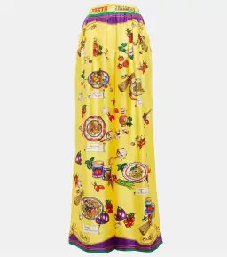 Dolce & Gabanna offers a taste of Italy with these pasta-printed pants. Made from silk twill, the high-rise design has an elasticated waistband and flared legs. Material: 100% Silk Care Instructions: Dry Clean Side Slit Pockets, Back Pockets Zipper Fly, Button Fastening Made In Italy Elasticated Waistband