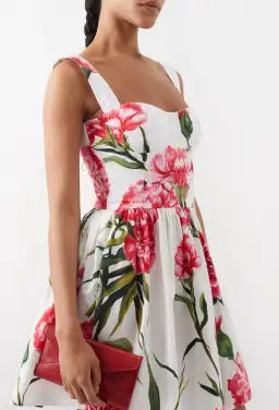Dolce & Gabbana Short Carnation Print Poplin Dress Size AU 12