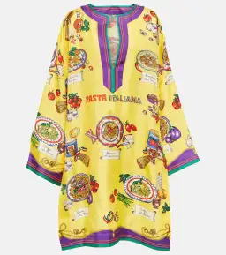 This kaftan from Dolce & Gabbana's Capri line pays homage to the brand's homeland. Featuring a colorful pasta print, this short style is made from silk twill and features a V-neckline.