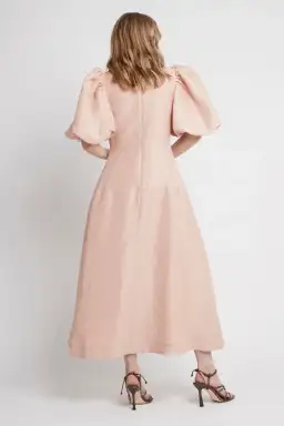 Aje Dusk Knot Puff Sleeve Midi Dress Blush Size 8
