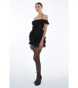 Dyspnea Froncè Ruched Top and Pètale Ruffle Mini Skirt Set Black Size L / AU 12