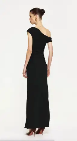 A perfect dress for all occasions, designed with off shoulder neckline with detailed ruching along the side for a soft silhouette. Made with our signature soft jersey fabric. Fabric: 94% Polyester, 6% Elastane