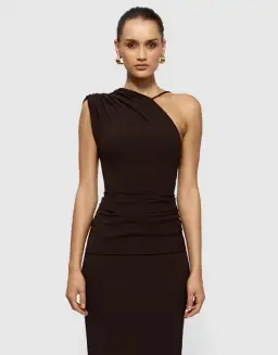 Effie Kats Greer Gown Asym in Coffee Chocolate Brown in Size XS / 6 AU