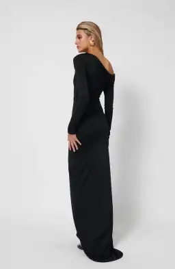 Floor length asymmetric neckline