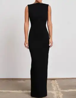 Our 'Verona' gown is so evocative of '90s glamour. Made from luxurious stretch-crepe, it has the decade's defining high neckline and simplistic silhouette. Complement the gown with a statement earring and hand held clutch.