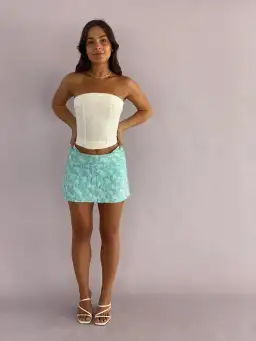 Eisha Collective Milah Mini Skirt Blue Floral Size 0 / AU 6