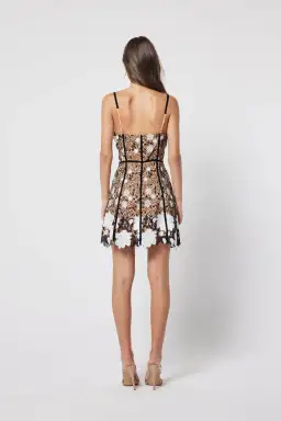 Exude effortless elegance in the Pembroke Dress by ELLIATT. This black and white lace mini features piping creating structure and shape on the body, nude lining and adjustable straps. Style with your favourite heels for your next event.