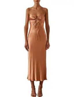 Shona Joy Loise Lace Up Midi Dress Caramel Size 8