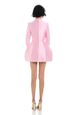 A charming mini dress with a sweetheart neckline and elegant sleeves. Cascading into a voluminous, structured mini skirt adds to the dresses playful flair. Complete with an invisible zipper and decorative buttons at the centre back, combines style and functionality for a chic and polished look.