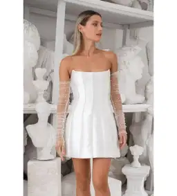 Also comes with pearl mesh detachable sleeves & a fully lined with an invisible zipper at the centre back.