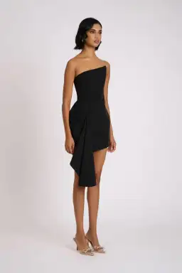 The Nellie Mini Dress is a bold and striking choice that redefines modern elegance. Featuring an angular asymmetric neckline, this mini dress immediately captures attention with its daring and unique design. The fitted waist with boning offers structure and support, beautifully accentuating your curves and creating a flattering silhouette.