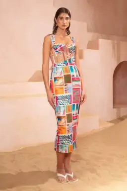 Designed in the new signature Vacanza print, discover the Lipari Dress. The perfect blend of sophistication and style to take you from day to night. The Lipari Dress is designed with underwired cups to ensure optimal support and comfort. This midi length silhouette gracefully transitions at the corset waistline into a sleek pencil skirt finish. Effortlessly combining fashion and functionality, step out in confidence with the Lipari Dress.