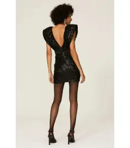 The Marla Black Sequin Mini Dress from Elle Zeitoune is a stunning, eye-catching piece that is perfect for any special occasion. This dress features a dazzling array of black sequins that catch the light with every movement, creating a glamorous and chic effect. It has a flattering silhouette that hugs the body in all the right places, showcasing both elegance and modern style.