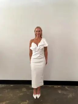 Elle Zeitoune Sharleene Midi Dress in White Size 14