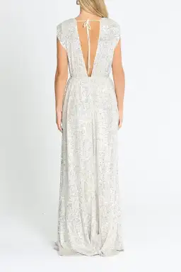 Elle Zeitoune Wrap Style V Neck Sequin Gown Silver Size 10