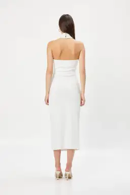 Adorned in pristine white, the dress exudes an air of angelic grace, reminiscent of freshly fallen snow or the petals of the purest lily. The silhouette gracefully follows your form, while the subtle textural details add depth and intrigue to the design.
