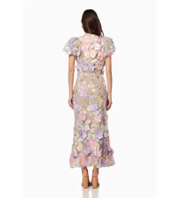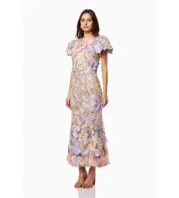 Elliatt Asterea 3D Pastel Floral Midi Gown in Pink Size S/ AU 8