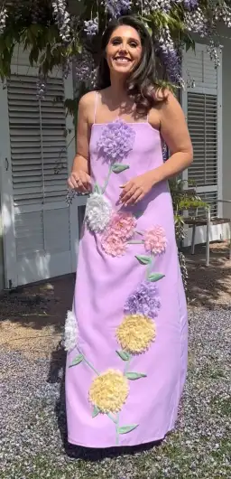 The Buttercup Embroidered Maxi Dress in Purple captures the essence of romantic elegance with a fresh, modern twist. Covered in whimsical multi-colour 3D floral embellishments, this flower-embellished maxi dress is a celebration of texture and detail. The soft purple hue adds a dreamy touch, while the delicate blooms bring life and colour to every step. Designed with adjustable shoulder straps, this piece allows for a tailored fit that feels secure and comfortable throughout the day or night. The silhouette falls effortlessly to the floor, and a centre back invisible zipper keeps the finish smooth and refined. Made from a breathable suiting fabrication, the dress offers light structure without compromising on movement—perfect for long celebrations or evening events. Its maxi length makes it a go-to for weddings, formal dinners, or special celebrations where grace and glamour are key. The Buttercup Embroidered Maxi Dress in Purple is ideal for anyone seeking a bold yet feminine look for a standout occasion.