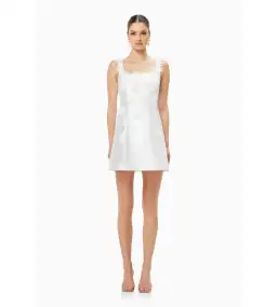 Crafted from high-quality crepe satin fabric in pristine white, this mini dress not only looks luxurious. The fabric is structured beautifully, creating an elegant A-line cut that will give you a flattering silhouette.