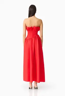 The detachable straps offer versatility, allowing you to customise your look to suit any occasion. Whether you prefer a strapless silhouette or crave additional support, this red maxi gown has you covered.