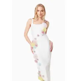 Elliatt Motif 3D Floral Dress in White Size AU 8