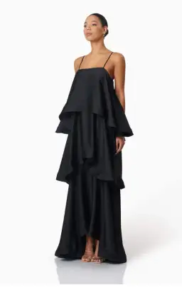 Elliatt Tilly Tiered Maxi Dress in Black Size Small / AU 8