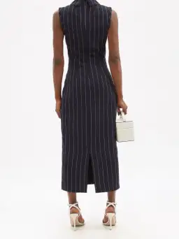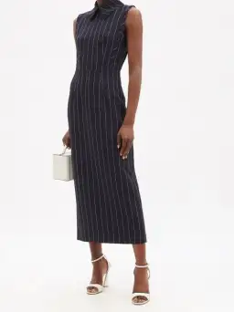 Emilia Wickstead Miles Pinstriped Crepe Midi Dress Navy/White Size 16