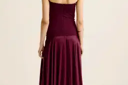 ESSE Studio presents the Lilli Strapless Maxi Dress in Shiraz. This exquisite garment epitomises delicate sensuality and refined femininity. Featuring a strapless design that accentuates the décolletage and a waist-hugging bodice, it exudes sophistication. Elevate your ensemble by pairing it with a pointed heel and statement earrings for an elevated look.
