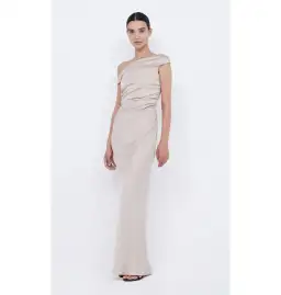 Bec & Bridge Eternity Off Shoulder Maxi Dress Sand Size AU 14