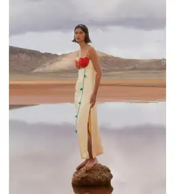 Farm Rio Beige Rose Shaped Bodice Sleeveless Maxi Dress Size AU 8