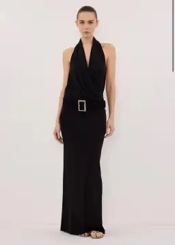 FELICITY BLACK SLEEVELESS HALTER MIDI DRESS SIZE M