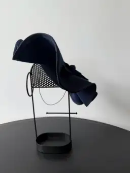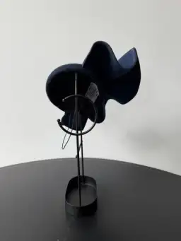 Felted Wool Headpiece with Sculptural Detail and Floral Velvet Adornment Navy One Size