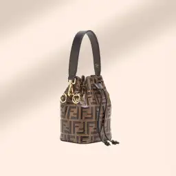 For their latest bag collection, the double-F logo steals the spotlight once again. Famous for being a part of Fendi’s trendsetting and luxurious bags, expect to see it as a bold graphic print or as a stylish metal embellishment. This brown and black calf leather Mon Tresor mini bag from Fendi features a top handle, a drawstring fastening, gold-tone hardware, a detachable shoulder strap, a main internal compartment, metal Fendi logo decorations to the sides and a debossed FF logo print all over.