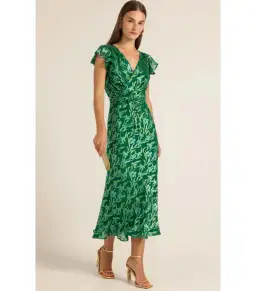 Sacha Drake Fleur De Lys Midi Dress Green Botanical Size AU 12