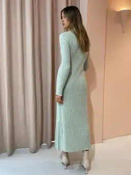 Transition effortlessly into the cooler months with the Thea Dress in Pistachio Twist by Friends with Frank.Crafted from a mid-weight breathable Cotton fabrication, this ribbed midi dress features a crew neckline, subtly flared long sleeves detailed with a cream trim and a straight edge scalloped hemline finishing above the ankles. Adored for its form flattering silhouette and pastel pistachio hue, the Thea Dress will be on high rotation for desk to dinner date styling.