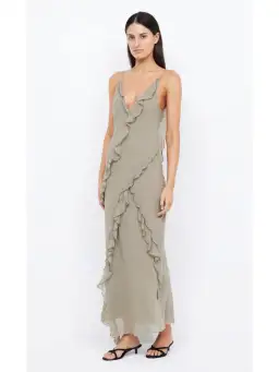 Bec & Bridge Gabriel Frill Maxi Dress Sage Size AU 8