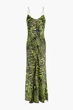 Tiger-print Slip Style dress in Stretch-Silk Satin in Lime Green and Black
