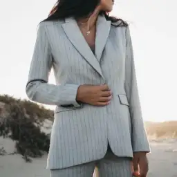 Farage Dylan Woolblend Suit in Gray Pinstripe Size 6