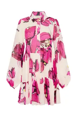 Full blouson sleeves, asymmetrical seams and gold geometric hardware bring a bold yet effortless air to this relaxed smock dress. Add a pair of Aje heels and a sculptural handbag to finish the look.