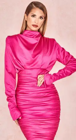 House of CB Giorgiana Satin Draped Mini Dress Hot Pink Size 6