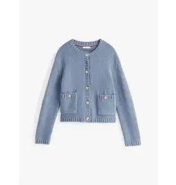 Tommy Hilfiger Gold-Tone Button Textured Cardigan Blue Size M/Au 10
