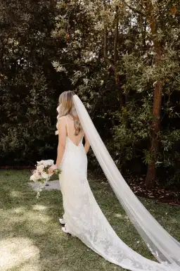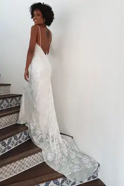 The low backline adds an elegant touch, and the dress features a bustle and finger loop for easy movement—perfect for dancing the night away. I found it so easy to wear, and the relaxed yet sophisticated style made me feel truly special.