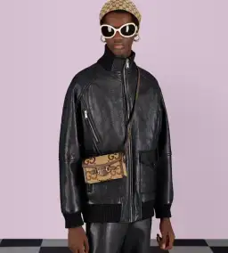 A part of the Gucci Horsebit 1955 universe, this bag's mini shape draws attention to the line's signature hardware. As a reimagination of Guccio Gucci's initials, the GG logo appears in a maxi size across the camel and ebony canvas.