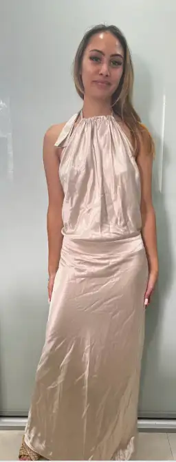 Sheike Satin Halter Maxi Dress Cream Size 6