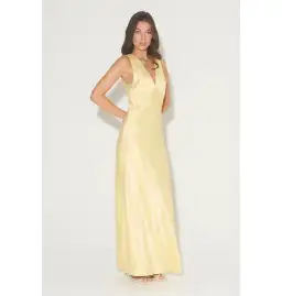 The Marcelle Dress is a gorgeous bias cut maxi. Designed with front and back V-necklines which are accentuated by the hammered texture of the silky fabrication. The bust is lightly gathered and the dress drapes beautifully through the body when worn. This is the perfect event piece, paired back with your favourite heels for a sleek look.