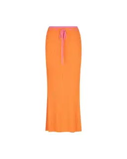 The Grapefruit Lacey Skirt is a relaxed fit midi skirt. It showcases a contrast waist bind, contrast threaded tie detail, and a ribbed knit texture. This versatile and stylish piece is a must-have addition to your wardrobe, offering endless possibilities for creating chic and effortless outfits.