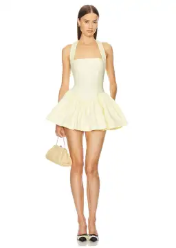 Helsa Faille Mini Dress Lemon Cream Size XXS / AU 4