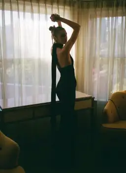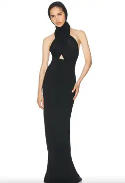 The perfect cocktail, formal, or black tie dress. Featuring a versatile adjustable tie-up top and ponte fabric maxi-length lower.