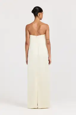 Crafted in a soft-satin Japanese fabrication, and a seasonal butter hue, the Amaya Dress combines classical draping with timelessness effervescence. The perfect addition to your occasional wardrobe, this style is designed in a strapless, maxi silhouette.